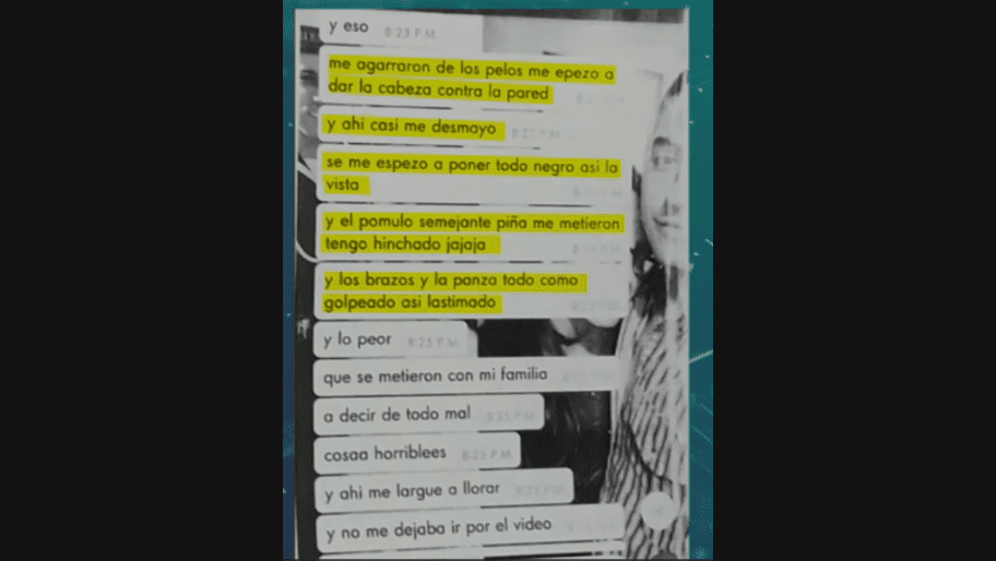 “Me llamó hasta la puerta para hablar y yo como un pelotudo fui. Me agarraron de los pelos, me empezó a dar la cabeza contra la pared y ahí casi me desmayo. Se me empezó a poner todo negro la vista y el pómulo semejante piña me metieron, tengo hinchado y los brazos y la panza todo como golpeado. Y lo peor que se metieron con mi familia a decir de todo mal, cosas horribles y ahí me largué a llorar y no me dejaba ir por el video. Lo borré y tampoco me dejaba porque decía que iba a habar. Le juré que no”.