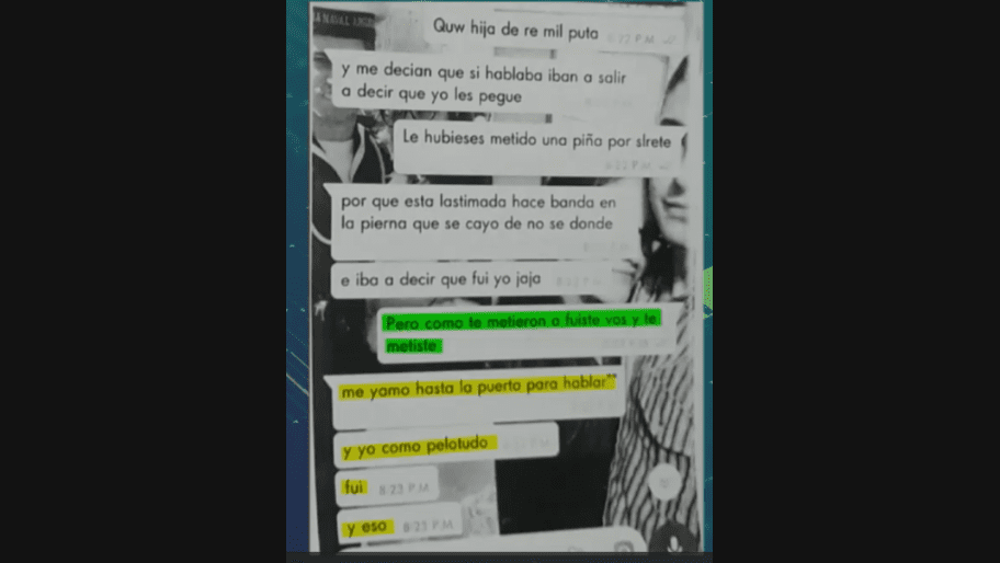 “Valió la pena mi cagada a palos si se deja de joder, pero jamás pensé que me podía llegar a hacer eso después de años”, agrega, antes de decir que por suerte “lo bloqueó” del teléfono. Además de esta conversación, la Justicia comprobó que hay más de mil mensajes entre los jóvenes.
