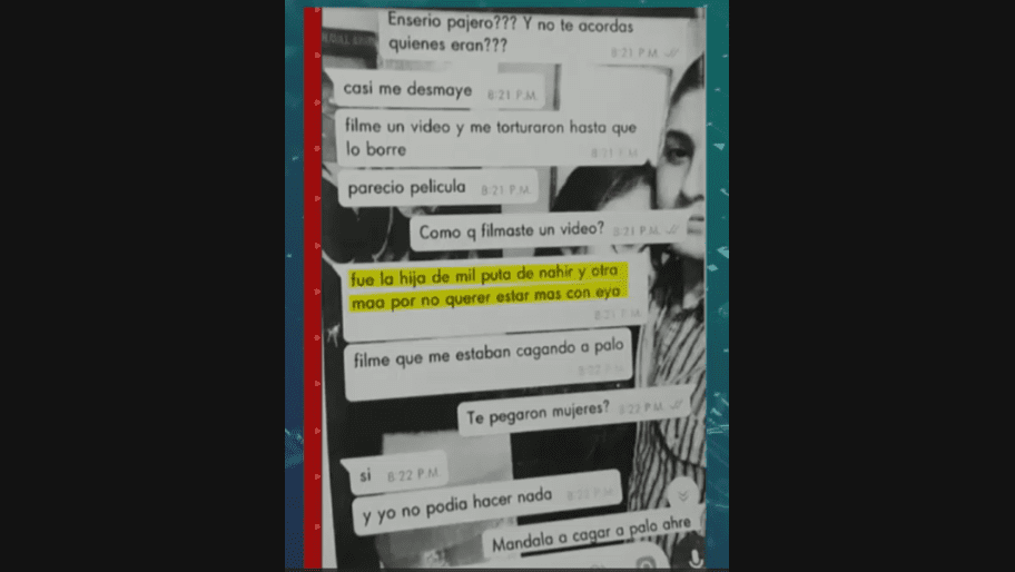 F.- Fue la hija de mil p… de Nahir y otra más por no querer estar con ella. Filmé que me estaban cagando a palos.