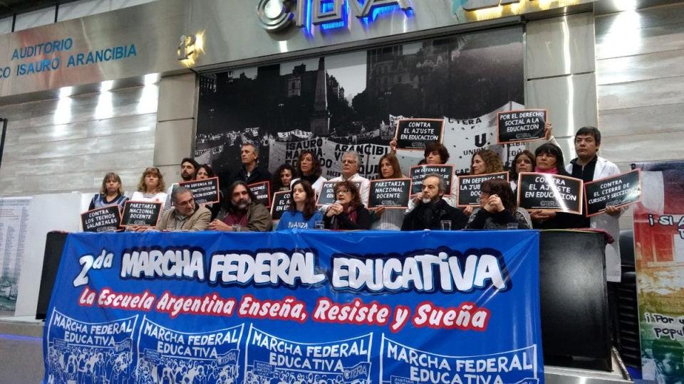 El puntapié inicial del denominado #23M fue dado esta mañana durante una conferencia en la sede de Ctera, donde dirigentes de distintos gremios explicaron los alcances que tendrá la protesta que partirá desde distintas ciudades de la Argentina y confluirá el miércoles en Plaza de Mayo.