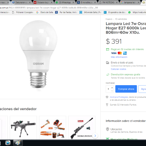 Tras un relevamiento por las principales paginas de venta Web del país, se pudo aproximar el precio por unidad de cada una de estas lamparas. En la mayoría de los casos la lampara led mas económica cuesta 400$, mientras que las demás no bajan de los $1000.