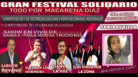Este sábado 14 de julio se realizará el Gran Festival Solidario “Todos por Macarena Díaz“.
