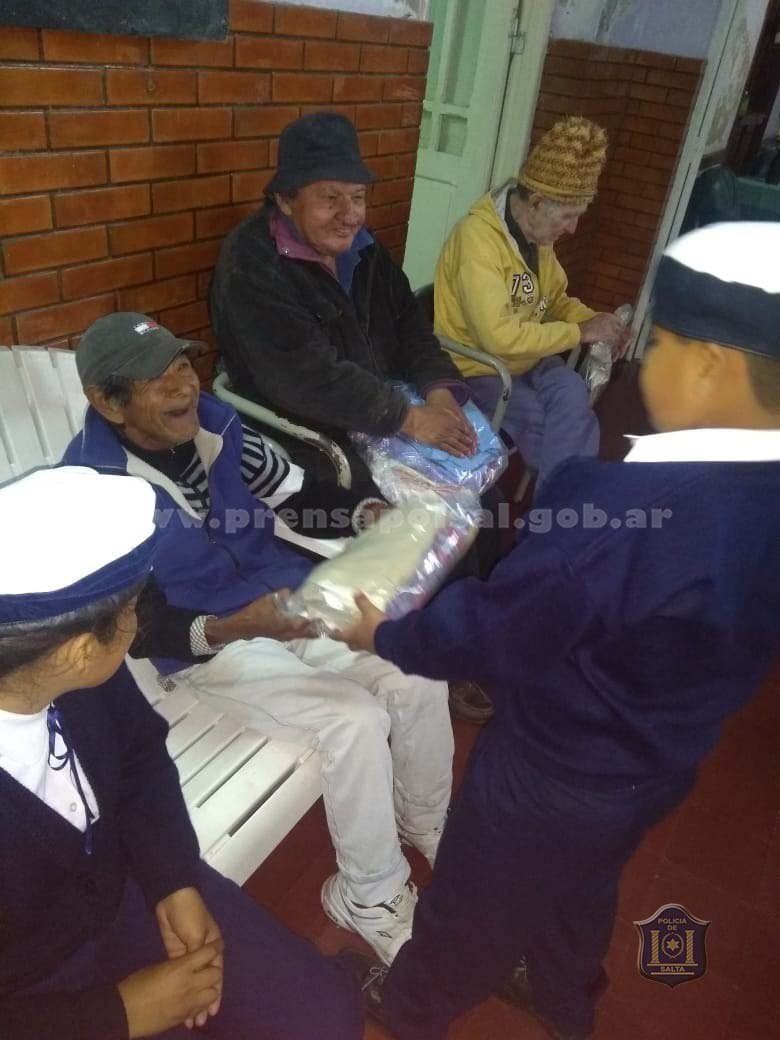 En un gesto de solidaridad los Operadores Comunitarios de la Policía de Salta, junto a niños del cuerpo infantil de policía, entregaron ropa y calzados a los abuelos del hogar “San Vicente de Paul” de esa ciudad.