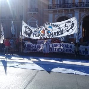 Miembros de la Tupac Aru se concentraron en la Plaza de Legislatura para decir “basta de despidos, de presos políticos y de ajustes” Aclaró Mónica Sánchez referente de la organización.
