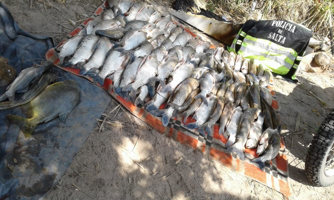 En un control de medio ambiente por orilla del Rio Bermejo, efectivos de la División Lacustre y Fluvial, hallaron entre los pastizales bolsas arpilleras acondicionadas para su traslado, las cuales contenían 104 pescados de especies sábalos, bagres y pacú.
