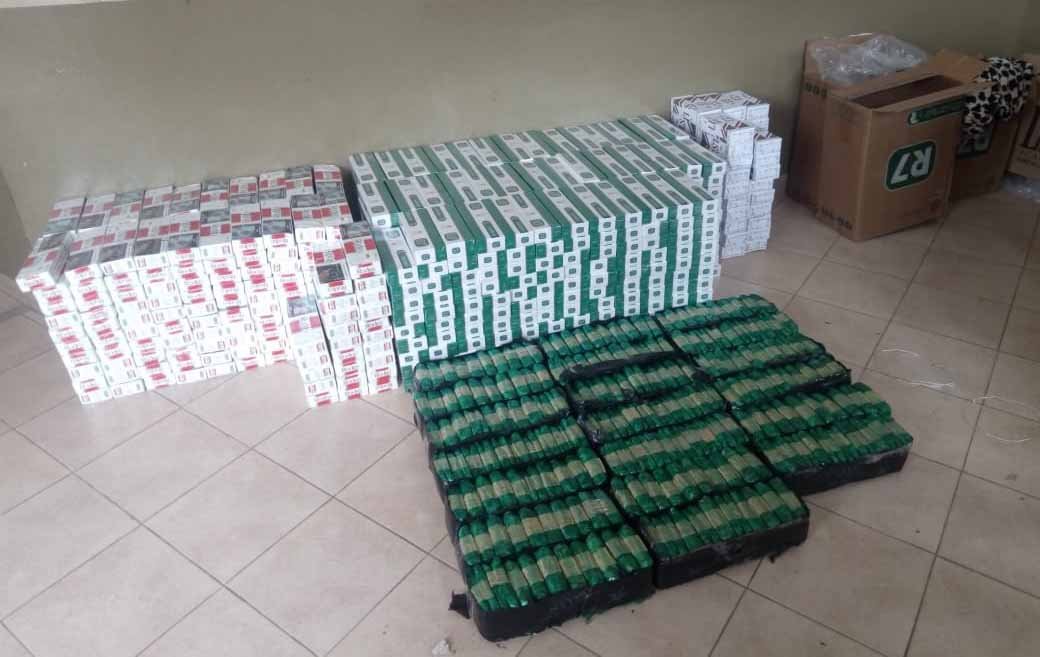 Le secuestraron 13 mil paquetes de cigarrillos de diversas marcas y otros 200 envoltorios de hojas de coca.