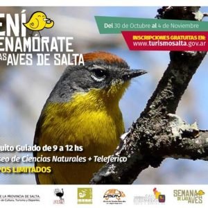 Las actividades, que se desarrollarán entre el 30 de octubre y el 4 de noviembre, incluirán diferentes capacitaciones y además se ofrecerá en forma gratuita un circuito guiado por el Museo de Ciencias Naturales (Mendoza 2) y el Teleférico San Bernardo para que salteños y turistas puedan conocer nuestras aves.