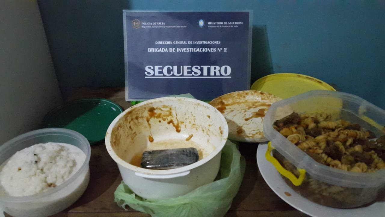 Poco después de las 21 personal de la Brigada de Investigaciones de Orán, controló los tápers con comida que una adolescente de 15 años intentaba acercar a un detenido, constatando que en un doble fondo de los recipientes se encontraba oculto un teléfono celular y un envoltorio con lo que parecía ser sustancia vegetal disecada.