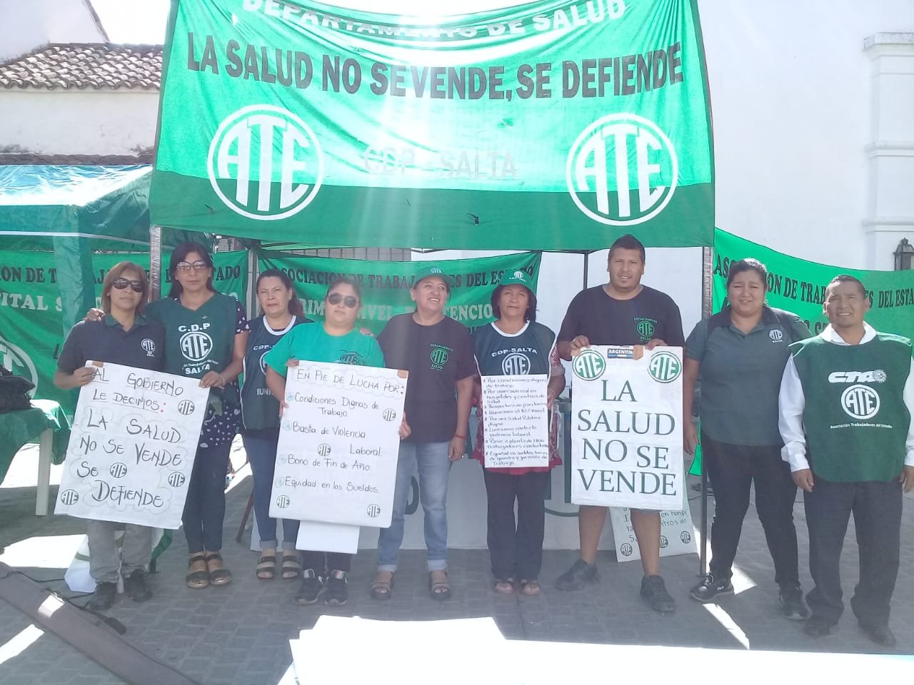 Una gran carpa de protesta instaló la Asociación de Trabajadores del Estado en la plazoleta IV Siglos para informar a la ciudadanía los recortes de salud.
