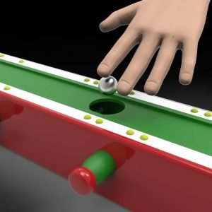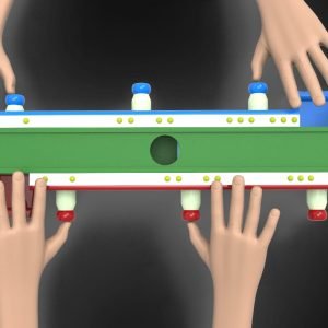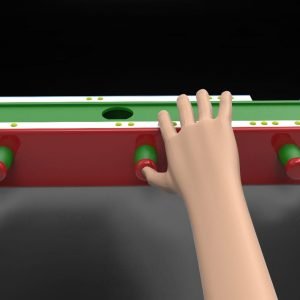 Se siente cuando va girando la pelota adentro, entonces los botones al ser tocados me avisan si toque la bola o no, porque distingue no solo el color a cada jugador, sino que distingue el sonido también. Por ejemplo, el jugador del equipo rojo tiene sonido de metal y el del equipo azul tiene sonido de la madera, entonces cada vez que yo golpeo suena de la manera determinante. Cuando se mete el gol se escucha una campanita donde sale la bola y comienza de nuevo el juego”.
