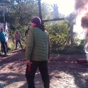 Obreros que pertenecen a una empresa terciarizada “Miksa”que presta servicio en Aguas del Norte, llevan a cabo una manifestación desde hace un tiempo. Ya que la obra esta paralizada por falta de pago.