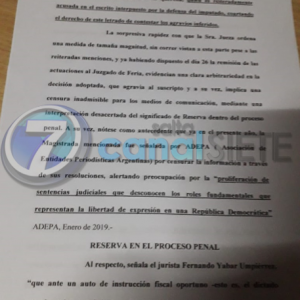 El doctor Santiago Pedroza, abogado de la victima, realizo una serie de presentaciones en relación a la medida cautelar dispuesta por la jueza Maria Edith Rodriguez, que prohíbe cualquier tipo de difusión sobre el caso. Que los medios periodísticos no puede hacer referencia al suceso y tampoco relacionar el caso con el conjunto musical de “Los Nocheros”.