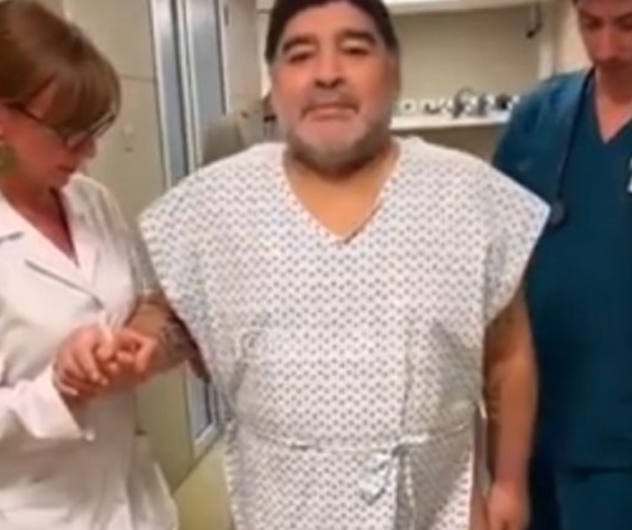 Hace cinco días, Diego Maradona se sometió a una intervención en la rodilla derecha en la Clínica Olivos, donde le colocaron una prótesis especial para ponerle fin a los dolores y dificultades de movimiento que venía sufriendo el “Diez”, que dejó la dirección técnica de Dorados de Sinaloa para ocuparse de su salud. Pues bien, el ex capitán de la Selección ya comenzó con la recuperación. Y compartió el primer video desde la operación, en la que se lo puede ver caminando con la asistencia de los médicos por el sanatorio.