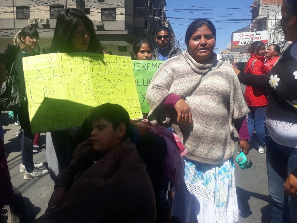 Un grupo nutrido de vecinos del asentamiento de Barrio Palermo, en representación de más de 600 familias damnificadas, se manifestaron en el en el centro salteño en reclamo del acceso a  un terreno o una casa digna. Una vecina que tiene un hijo con discapacidad, expresó: “no tenemos respuesta de nada. Nos hacen ir IPV, nos tienen mintiendo, nos hacen ir un día, otro día”. Y finalizó “no somos vagos, somos trabajadores. Si quiere que lo paguemos, lo pagamos”.