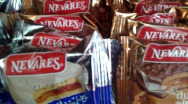 La Administración Nacional de Medicamentos, Alimentos y Tecnología Médica (ANMAT) prohibió por disposición 7894/2019 la comercialización en todo el pais de ciertos lotes de los productos: “mini torta sabor chocolate rellena con dulce de leche y mousse sabor a vainilla cubierta con baño de repostería” marca Nevares, nombre de fantasía Chocoblok; “oblea con relleno sabor a vainilla cubierta con baño de repostería”, marca: Nevares, nombre de fantasía: Crocbar; “oblea con relleno tipo mousse sabor de chocolate y maní con baño de repostería”, marca: Smack; “oblea rellena con pasta a base de azúcar y leche con sabor a vainilla, arroz inflado, cubierta con baño de repostería”, marca: Nevares, nombre de fantasía: Swiss roll; “alfajor relleno con dulce de leche recubierto con baño de repostería fantasía blanco”, marca: Genio; “alfajor con relleno a base de cacao cubierto con baño de repostería, fantasía blanco”, marca: Mogy; “alfajor relleno con pasta de marroc”, marca: Fulbito; “oblea rellena con crema de maní cubierta con baño de repostería”, marca: Nevares y “turrón de maní recubierto con oblea con baño de repostería”, nombre de fantasía: Fantasía, marca Nevares.