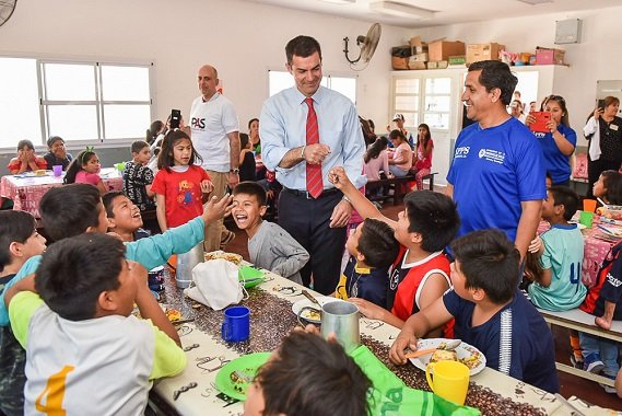 El gobernador Juan Manuel Urtubey visitó este mediodía la escuela Leopoldo Lugones de barrio Unión, en la zona norte de la ciudad, donde más de 200 niños que asisten al establecimiento reciben su almuerzo, en el marco del PAS.