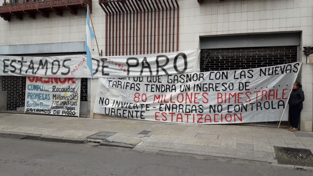 40 trabajadores de Gasnor, la empresa a cargo del servicio de gas domiciliario en Jujuy, están de paro en reclamo de la reapertura de las paritarias. La medida afecta no solo a la oficina de calle Necochea, en San Salvador, sino también a las oficinas de Libertador, Humahuaca, Tilcara y San Pedro.