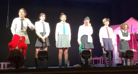 Jovencitas integrantes de un grupo estudiantil se manifiestan contra la violencia ejercida por la política piñera, y el uso de las fuerzas armadas para someter por vía del asesinato a su pueblo.