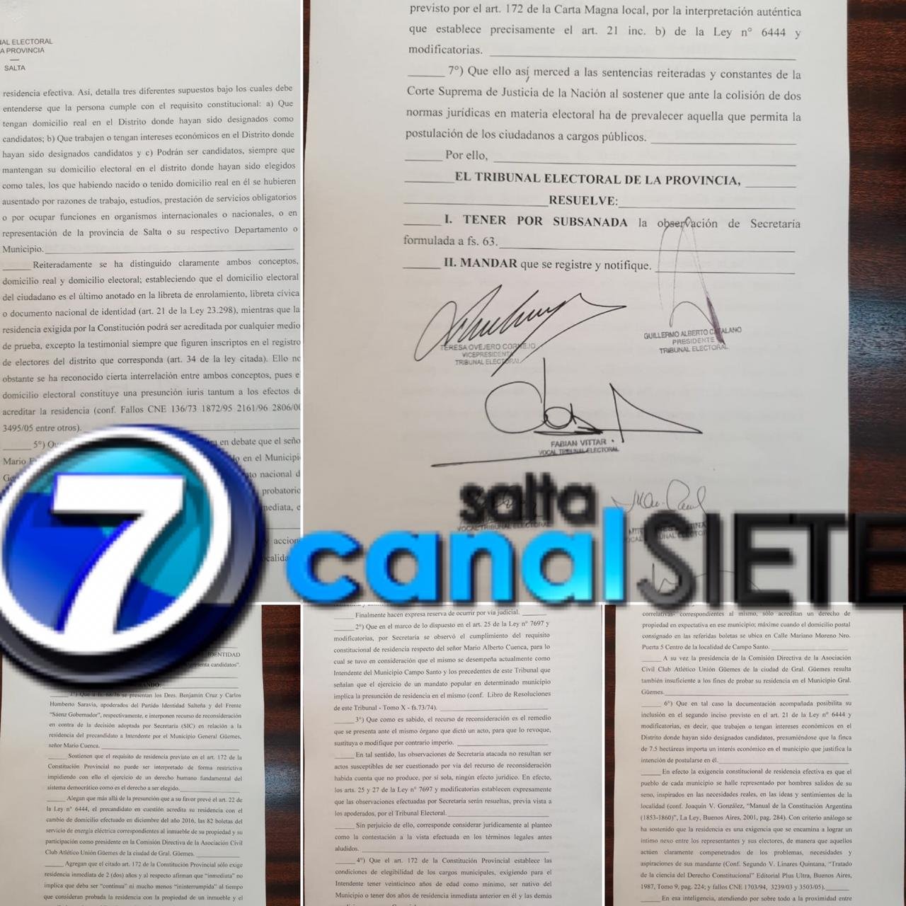 Canal 7 Salta pudo acceder a la resolución emitida por el tribunal electoral, donde impugna el pedido de la baja de la candidatura del jefe comunal de Campo Santo, para la Justicia “no infringe la ley”.