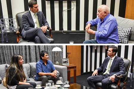 El Gobernador recibió en Casa de Gobierno al candidato a intendente de La Merced por el Partido Fe, Javier Wayar que anoche sufrió agresiones y también al actual intendente y candidato del Partido Justicialista, Juan Angel Pérez cuya hija, también candidata, recibió amenazas en el marco de la campaña electoral provincial.