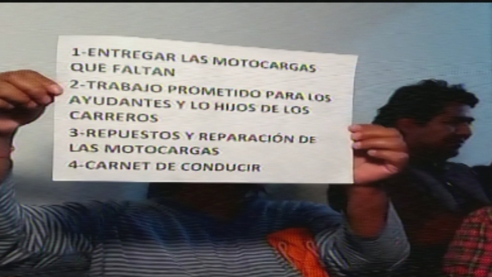 Por otro lado también exigen la entrega de cascos protectores, el carnet de conducir correspondientes, los respuestos para las motocargas, teniendo en cuenta que son de un precio alto y que sin ellos el vehículo no puede funcionar, y además que se entreguen las motocargas faltantes para el resto de los ex carreros que todavía no las han recibido; como así también el trabajo prometido para los ayudantes y los hijos de quienes se dedicaban a estas actividades.