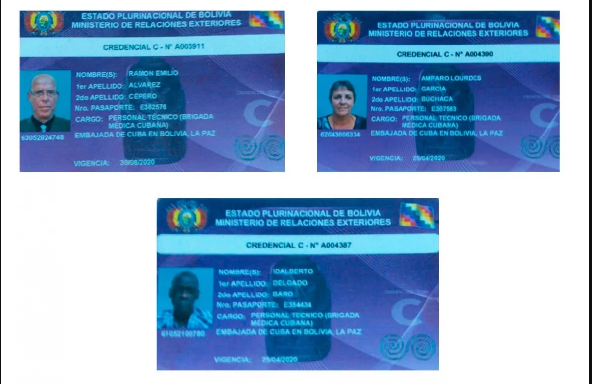 De acuerdo con los documentos de identidad a los cuales tuvo acceso el sitio cubano CiberCuba, tres de los cuatro detenidos forman parte del personal técnico de la Embajada de Cuba en Bolivia, como integrantes de la Brigada Médica Cubana en ese país.