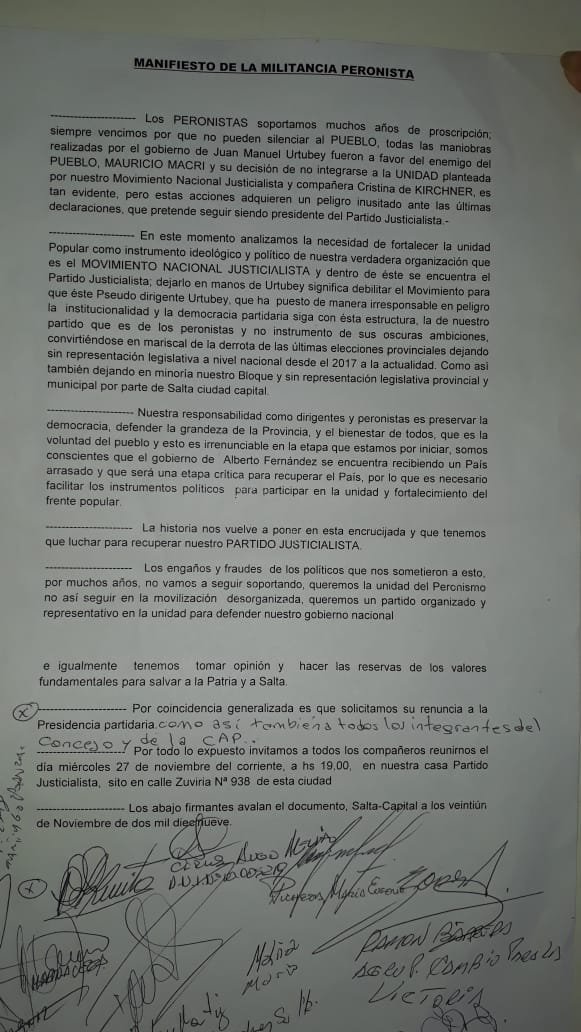 Pedroza también aclaró de qué consiste la medida de fuerza: “Cuando me presentan todas las notas veo realmente que hay una situación donde no hay nadie en la práctica del ejercicio del poder que le atribuye el cargo a cada uno. Justamente en esa situación es la que se está planteando en la justicia, pero ellos se deben a sí mismos una discusión muy profunda de lo que quieren hacer con el partido.”
