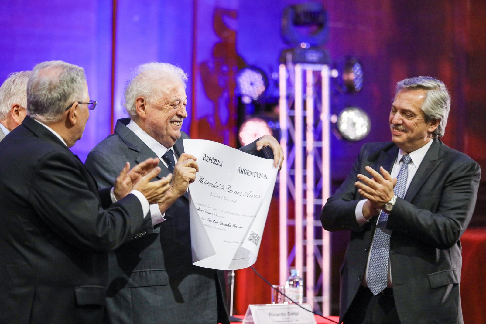 SALTA – Alberto Fernandez en la UBA – ARGENTINA 3 diciembre, 2019 El presidente electo, Alberto Fernández, participó esta tarde, junto al rector Alberto Barbieri, del acto en el que Gines González Garcia recibió un doctorado honoris causa en la Facultad de Medicina de la UBA. Poner corresponsal de Bs As