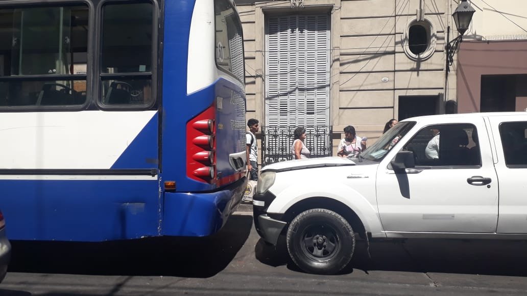 “Yo estaba estacionado por el semáforo en rojo, sentí el golpe atrás, me bajé y me dí con eso”, detalló el conductor del transporte público.