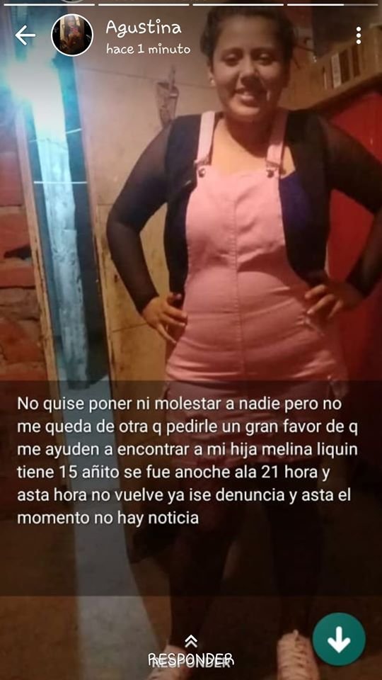 “Ayuden compartiendo Comentando porfavor… si no es mucha molestia tiene 15 años su mamá y familia estan muy preocupados por ella por donde esta o con quien esta. Porfavor comunidad ! AYUDENOS. Si alguien sabe algo, o la vieron en algun lugar avisenos por favoor. Solo les pido q me ayuden difundiendo la mama esta desesperada 3874032237” refleja una de las publicaciones.