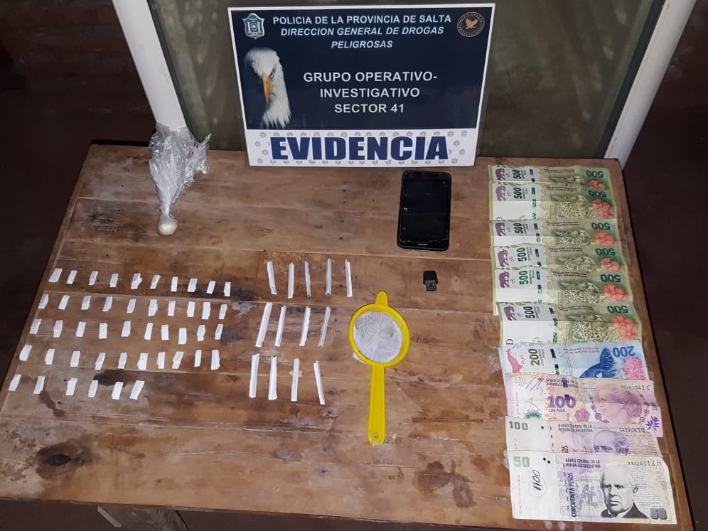 Otro de los procedimientos se realizó en Rosario de Lerma en la Cancha del Barrio Santa Rita donde los uniformados observaron a un joven quien ante la presencia policial se mostró nervioso, percatándose personal que a cercanías se encontraba un envoltorio con sustancia.