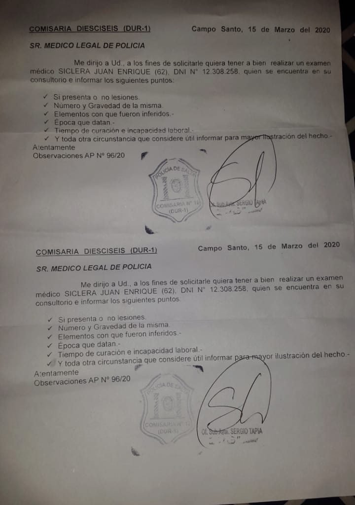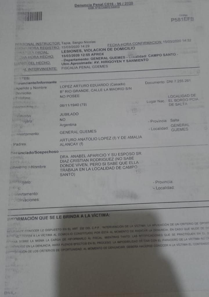 De repente se hicieron presente en el lugar la abogada Anabel APARICIO, el esposo de la misma y otro masculino, de manera imprevista la abogada APARICIO golpeó a SICLERA con un elemento contundente, ocasionándole una seria lesión en el arco super ciliar izquierdo, esto motivó que SICLERA recibiera atención médica, en donde le hicieron 5 puntos de sutura. Recordemos que la abogada APARICIO, fue candidata a Intendente en Campo Santo en el año 2019.