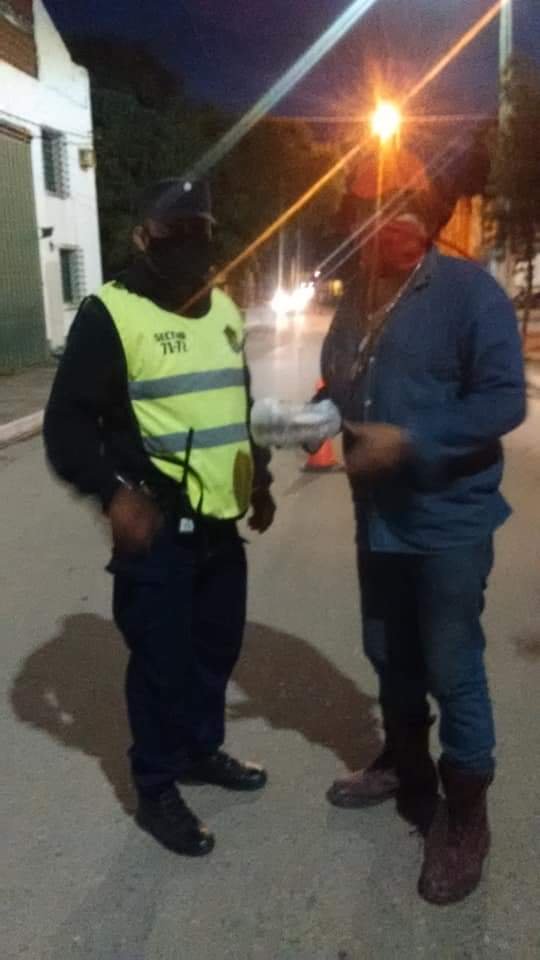 Y a mis vecinos y amigos Señor Rubén Nogales, sus hijos Matias Facundo Nogales y Marcee Nogales, y al Señor Beto Sarapura e hijos Ismael Sarapura por poner a mi disposición un medio de movilidad para poder entregar todos los panes. Nuestros Policías nos están cuidando las 24 horas y por eso les pido que no salgan de su casa así también los ayudamos Bendiciones para todos”, concluyó.