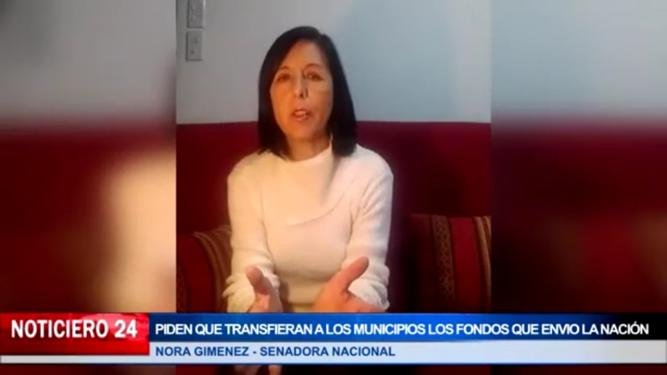 Nora Gimenez, la Senadora Nacional por el Frente de Todos grabo un video solicitando a la provincia que se transfieran a los municipios los fondos que envió la Nación.