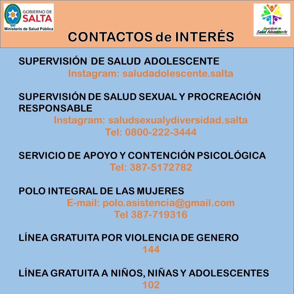 El organismo recibe consultas por su cuenta oficial de Instagram @saludadolescente. salta, ya sea de manera pública o privada.