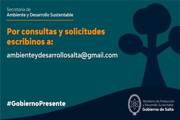 Estas opciones se suman a la atención que se viene brindando por medio del e-mail ambienteydesarrollosalta@gmail.com para asuntos generales.