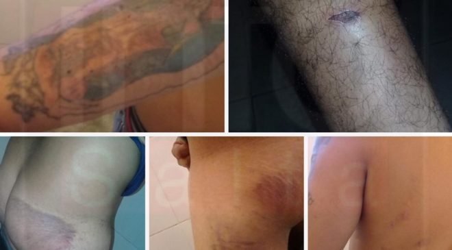 Desde este medio tuvimos la posibilidad de dialogar con los jóvenes tras su liberación quienes nos mostraron las heridas y los golpes sufridos en contexto detención, además relataron el terrible momento por el que pasaron: “nos golpearon cuando nos estaban haciendo firmar la detención…”, dijo uno de los liberados, mientras que su compañero aseguró: “me pegaron en todo el cuerpo el sábado mientras nos pegaban uno filmaba…”.