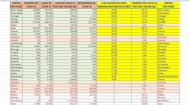 Esta es la hoja de calculo que compara vacunaciones y muertes por covid-19: A prestar atención a los números