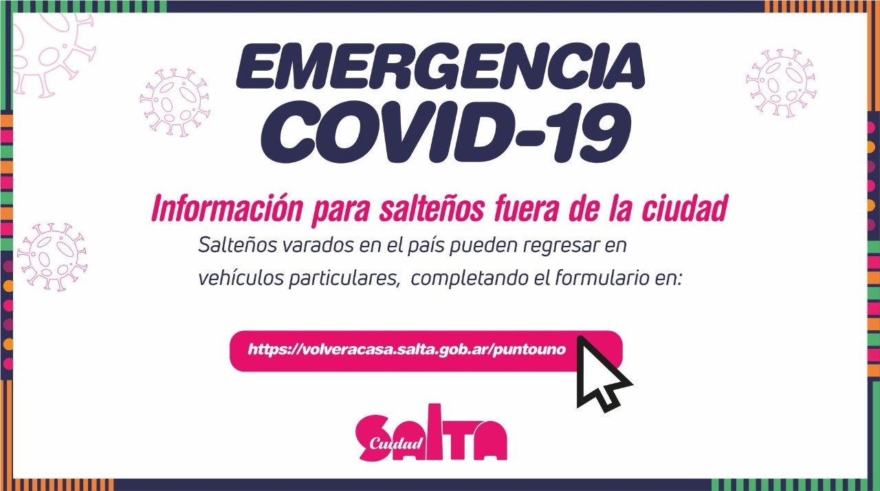 Para quienes se encuentran en el país y desean regresar en vehículos particulares, deben completar el formulario que se encuentra en el siguiente enlace: https://volveracasa.salta.gob.