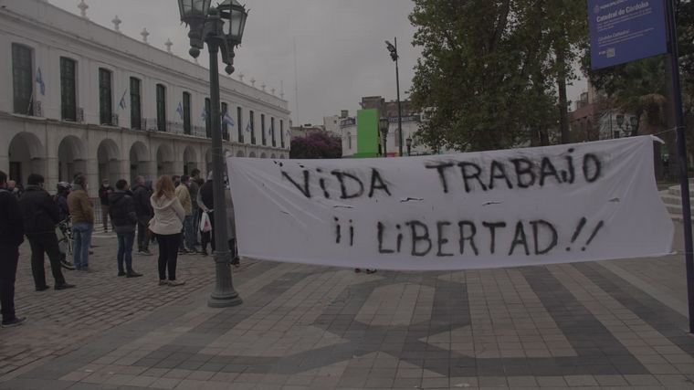Comerciantes de la ciudad de Córdoba se autoconvocaron este viernes al frente del Cabildo, para reclamar la reapertura de la actividad económica.