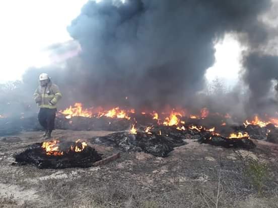 Alrededor de las 14:50 horas del día lunes el personal de Bomberos Voluntarios General Belgrano recibe un llamado por incendio de cubiertas con riesgo de propagación en el Parque Industrial Gral. Güemes.