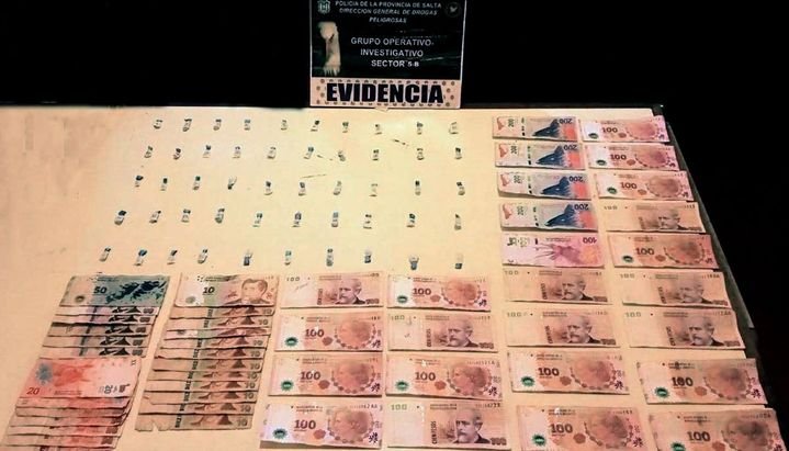 Secuestraron 50 envoltorios con sustancia blanquecina y dinero.