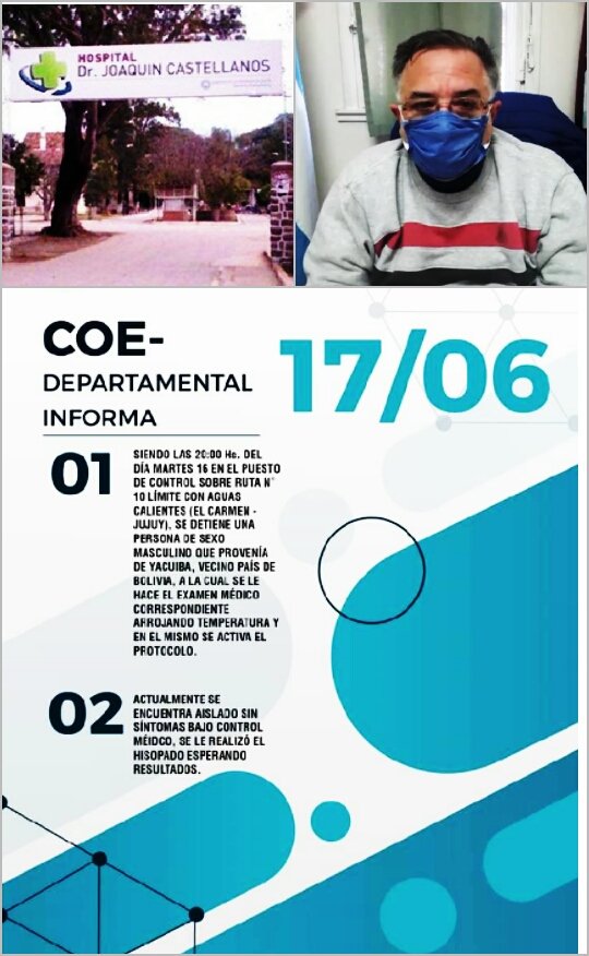 El gerente del hospital Joaquín Castellano de Gral. Güemes, el doctor Rubén Villalón, explicó que, durante la noche del martes, un hombre que regresaba de Yacuiba e ingresó por Aguas Calientes se activó el protocolo y debió ser aislado en el Hospital Joaquín Castellanos.