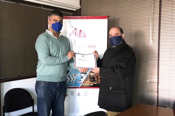 La entrega del certificado estuvo a cargo del titular de ese organismo, Ricardo Alonso, quien destacó la iniciativa del profesional  y recalcó que la Secretaría, además de fijar las normativas de control y gestión de la actividad minera en toda la Provincia, cumple un rol estratégico como fuente de conocimiento y vinculación con la casa de altos estudios en favor de la investigación y el desarrollo científico minero.