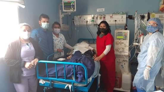 Durante su elocución, manifestó: “Agradecemos al Dr. Alberto Pedernera, Cirujano Vascular que vino exclusivamente a colocar el catéter Central, al Dr. Turitich, terapista del Hospital que coordinó el operativo, a la Dra. Estelina Aguirre, subgerente del Hospital, al Dr. Rubén Villalón, Gerente General del Hospital, al personal técnico de Ce.Di.Cla; Licenciada en Enfermería y tecnica en hemodiálisis Jimena Ramírez. a enfermeros del Hospital de Güemes y a todos los que intervinieron en este procedimiento.