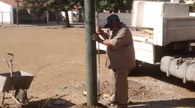 Una cuadrilla de trabajadores de la municipalidad realizó trabajos de iluminación y colocación de postes eléctricos para mejoras e iluminación , así como la revisión e instalación de cámaras de seguridad en Bicisenda de Avda Belgrano, en el caso de los  postes para las nuevas luminarias se realizaron  en plaza del B° Parque Gral Belgrano.  De igual forma se realizó también la intervención de tareas de mantenimiento del Cementerio Santa Cruz.