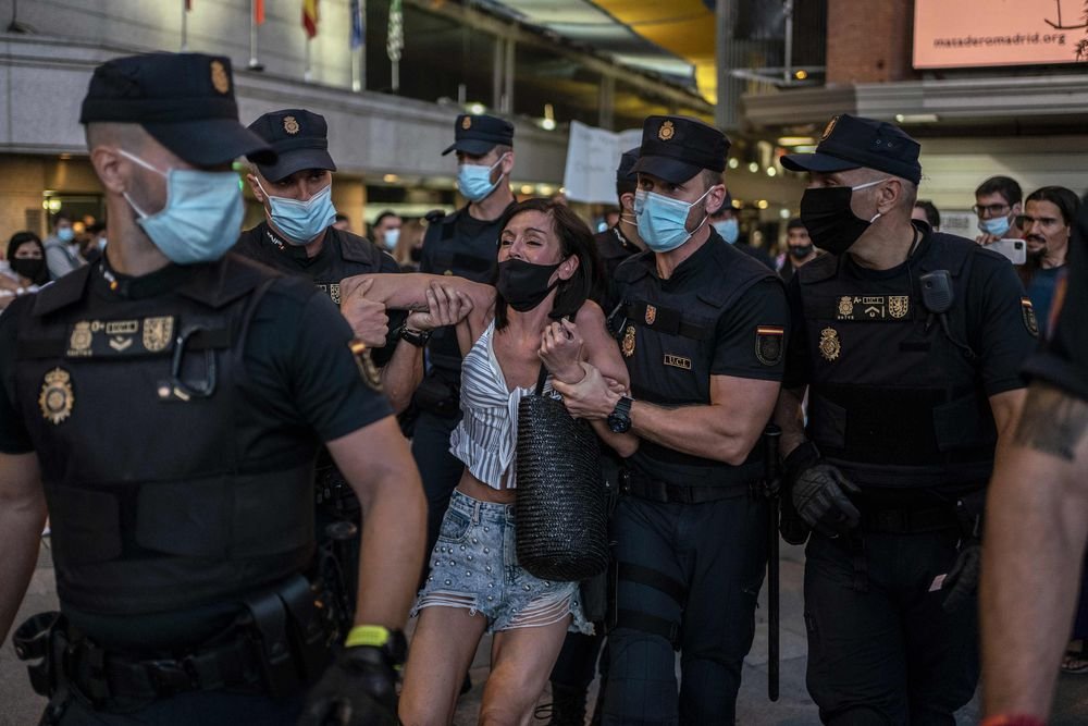 En el acto de protesta se han concentrado unas 500 personas, que han marchado a última hora de la tarde por las plazas de Callao, Mayor y Ópera. Su objetivo era reunirse en la Puerta del Sol pero la policía se lo ha impedido, según el citado portavoz. Los promotores lo habían convocado por redes sociales y no habían avisado previamente a la delegación del Gobierno. La policía también ha identificaido a 110 participantes en la marcha que no llevaban mascarilla. Según la fuente mencionada, que se les tomen los datos no comporta necesariamente una multa. Los arrestados han sido los participantes que más rebeldía mostraron, agregó.