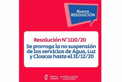 El Ente Regulador de los Servicios Públicos determinó extender hasta diciembre del 2020 el alcance de la resolución 555/20, emitida el pasado marzo, la cual, entre otras medidas, prohíbe la suspensión de los servicios de energía eléctrica y sanitaros en toda la provincia.
