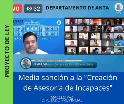 El Proyecto de autoría del diputado provincial por Anta, Marcelo Paz, permite la “Creación de una Asesoría de Incapaces” con competencias en los fueros Civil, Penal, Violencia Familiar y de Género y procesos extrajudiciales”; con el fin de garantizar los derechos de los niños, niñas y adolescentes.