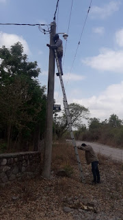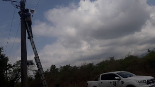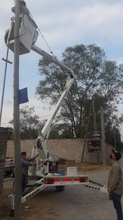 La sección de electricistas de la Municipalidad de Campo Quijano con la hidro grua y de la Delegación Municipal La Silleta se encuentran trabajando en las zonas de La Merced Chica y El Encón Grande, desde allí nos llegan estas imágenes.